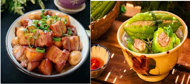 ゴーヤを肉詰めにしたスープは、テトに欠かせない一品で、一年間の苦難や困難が「過ぎ去る」ようにと願いを込めて食べられます。ゴーヤの苦味と肉詰めの香ばしい風味が、爽やかな味わいを生み出します。